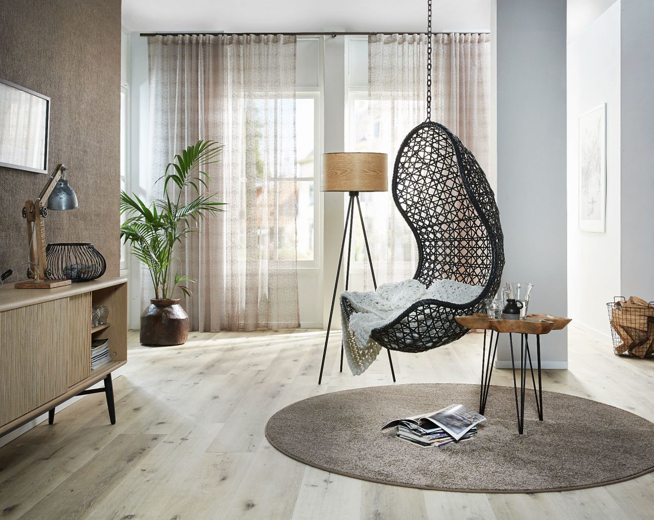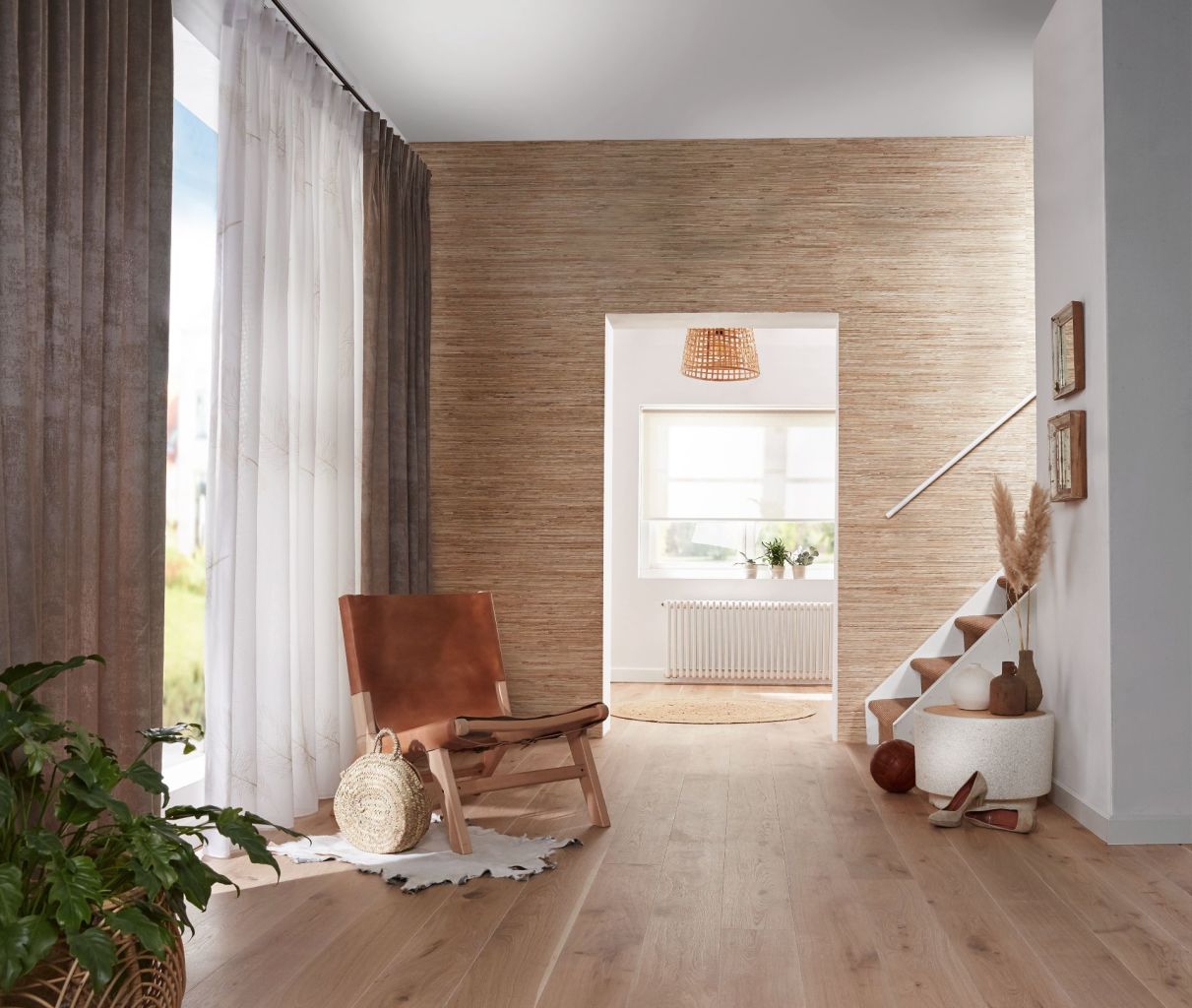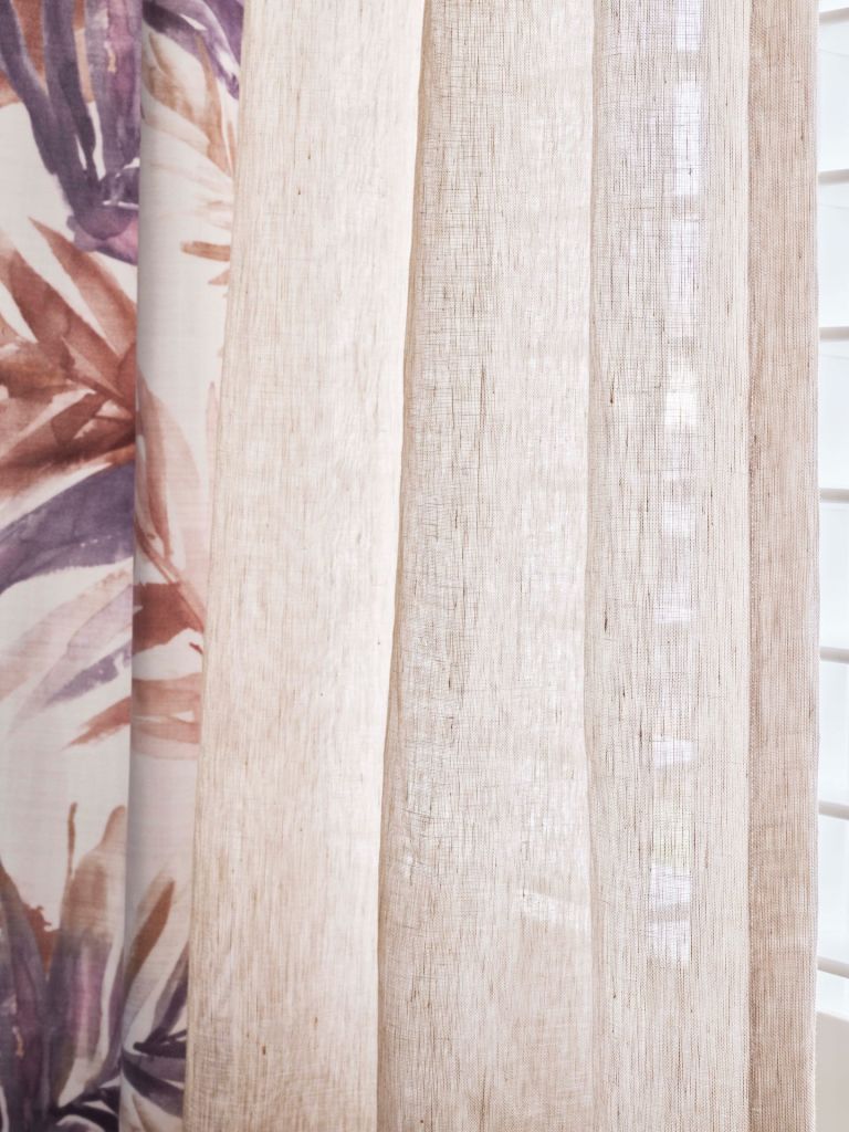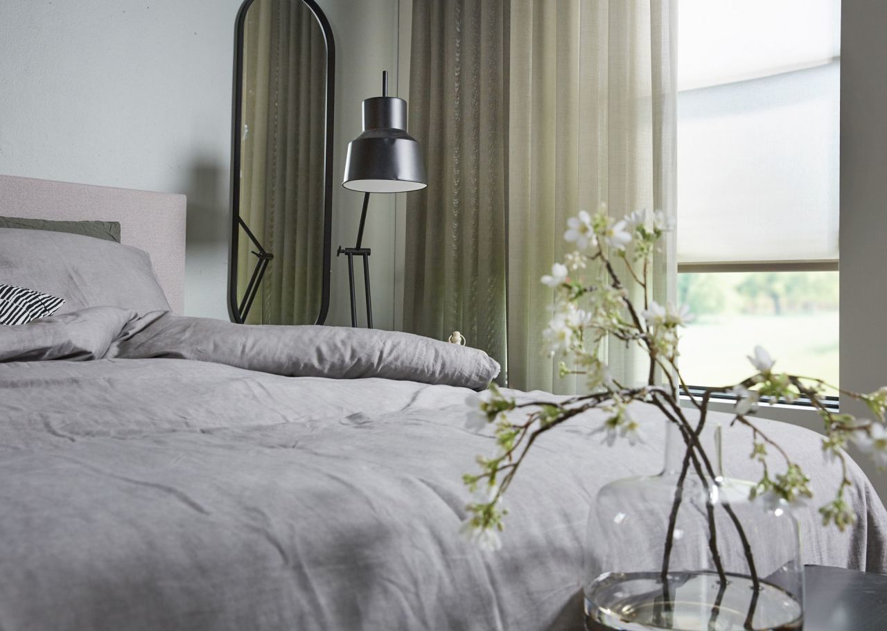 De volle gordijnen zijn echte sfeermakers. Er is volop keuze uit mooie kamerhoge stoffen. Hierdoor kunnen de gordijnen naadloos worden geconfectioneerd en zie je geen banen. Je kunt gaan voor cleane witte gordijnen, of juist een print. Door de semi-transparante stof blijft de print subtiel, maar geeft net wat extra sfeer.